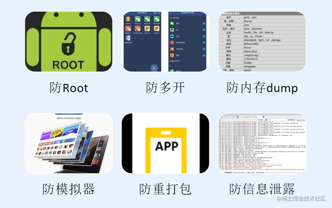 **环境安全:**App运行环境安全评估,是否存在反调试、注入、内存durmp、加速、二次打包等风险。