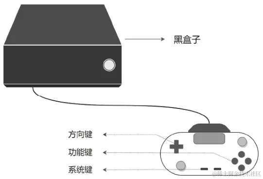 举个例子,我们买了一台游戏机,主机内部集成了非常复杂的电路及电子元件,这些对外部来说完全是不可见的,就像一个黑盒子。虽然我们看不到黑盒子的内部构造与工作原理,但它向外部开放了控制接口,让我们可以接上手柄对其进行访问,这便构成了一个完美的封装,如图25-6所示