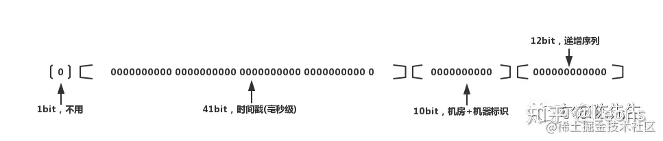 * 1位标识,由于long基本类型在Java中是带符号的,最高位是符号位,正数是0,负数是1,所以id一般是正数,最高位是0