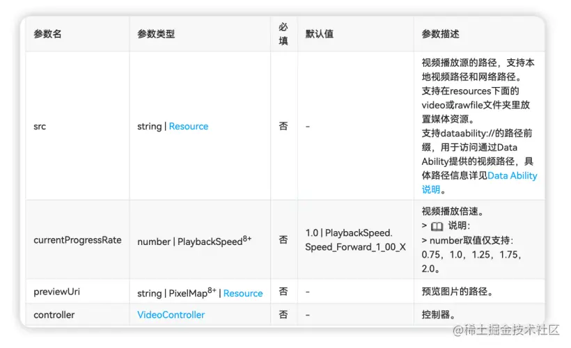 controller:VideoController控制器。一个VideoController对象可以控制一个或多个video。如果需要通过代码控制视频的播放、暂停等,可以给Video组件设置这个参数,然后通过控制器的如下接口控制视频播放状态: