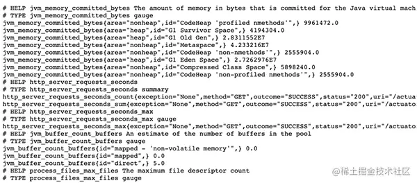 启动之后,我们就可以通过访问 http://localhost:8080/actuator/prometheus 来获取监控数据。