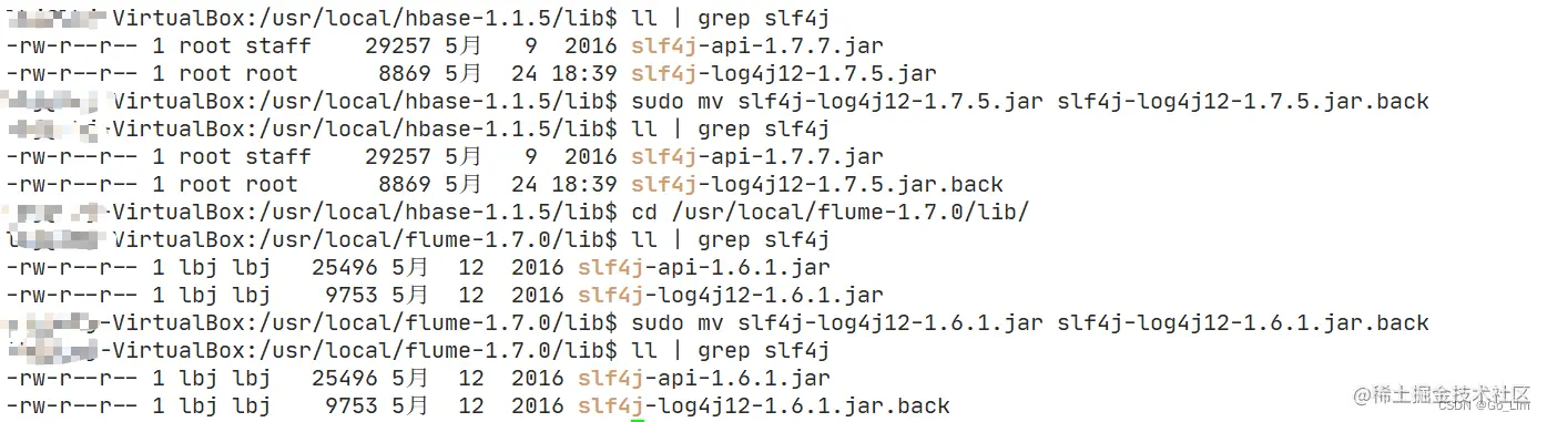 Hbase和Flume的slf4j-log4j12-x.x.xx.jar与hadoop的slf4j-log4j12-x.x.xx.jar冲突(版本不一致)