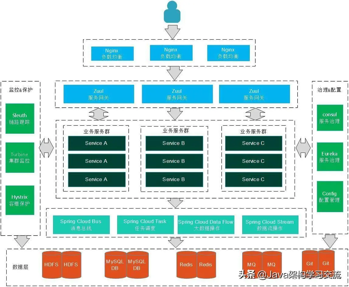综上,我们对于高可用集群和微服务架构做了简单的场景和架构图分析,并不是说什么场景下一定要用什么架构,也不是说什么最潮流就用什么架构,而是根据实际成本和产出作为出发点做选择。