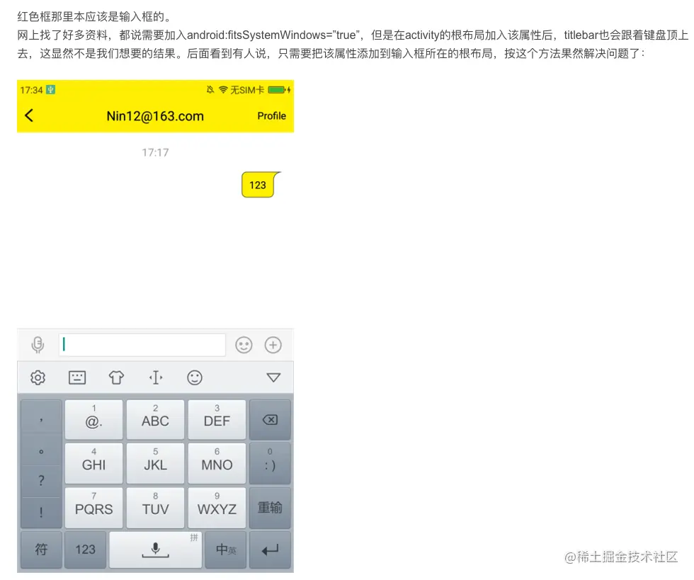 1.效果图1部分表明设置透明状态栏生效,也说明fitsSystemWindows = true 会给系统View 预留出空间,如状态栏 导航栏,fitsSystemWindows = true只有设置在根root或者第一个子view才生效,系统默认是false(但是这哥地方也留出了toolbar区域 这个不太理解)