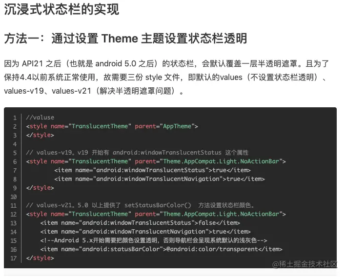 沉浸式状态栏实现