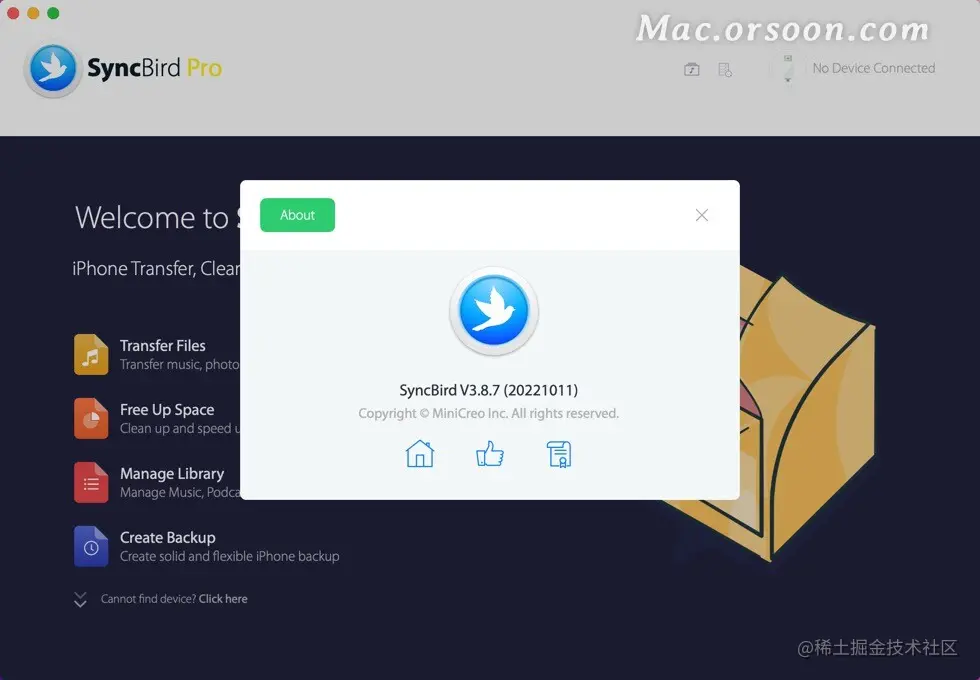 SyncBird Pro for Mac是一款专业的iOS数据传输工具,SyncBird Pro Mac版具备iPhone数据传输、铃声制作、垃圾清理、备份文件浏览等实用的功能,syncbird for mac在不使用iTunes的情况下,在iPhone,iPad,iPod和Mac之间传输音乐,播放列表,照片,视频,书籍。SyncBird的独家功能名为PhoneCare和TunesClean。