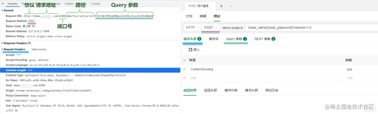 API Path 里面可能填写了 Query 参数,Eoapi 会将它自动同步到 Query 参数的表格里面。