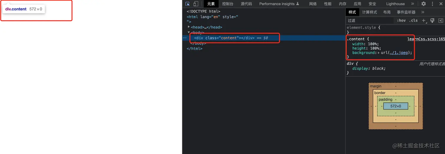 上图中,为某个div元素设置height为100%,但是渲染的时候为0,原因就是其父级元素没有显示指定高度,且该元素不是绝对定位,因此其父元素的计算值是auto,因此该元素的百分比值被完全忽略了。