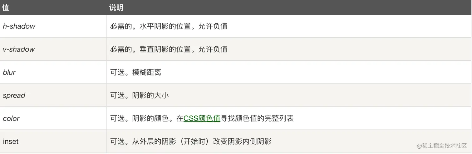 box-shadow语法:box-shadow: h-shadow v-shadow blur spread color inset;