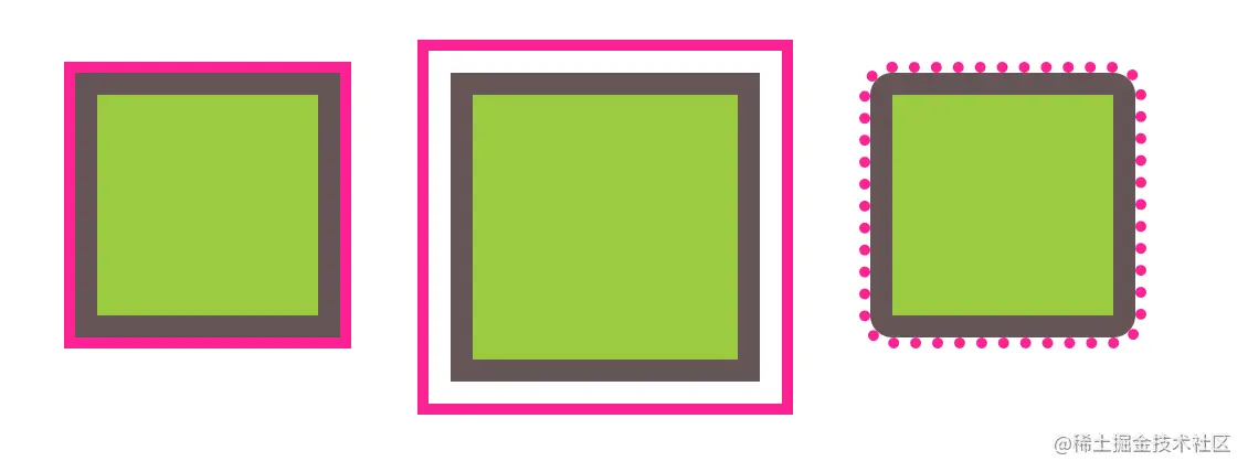 box-shadow: 0 0 0 10px #655, 0 0 0 15px deeppink;