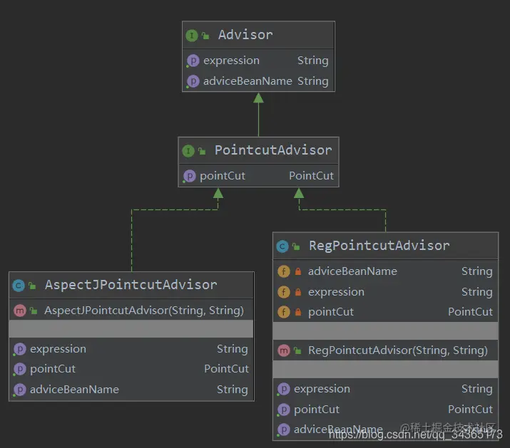 Advice是由用户来实现的,这部分逻辑需要用户写好然后我们实现AOP的时候来进行使用;我们需要认识用户的东西,用户需要使用我们写的框架,而且还需要隔绝用户的多变性
