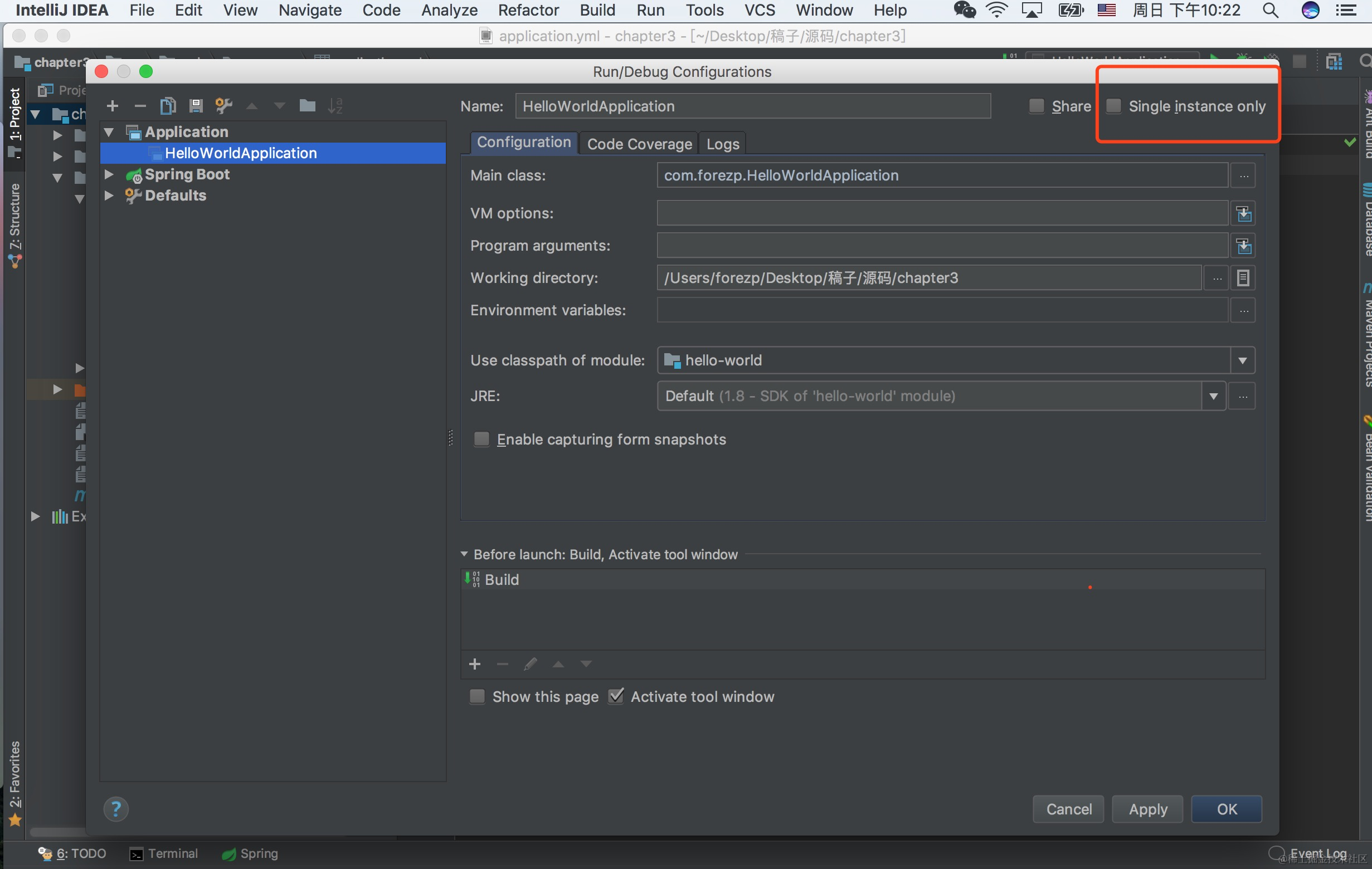 打开配置后,将默认的Single instance only(单实例)的钩去掉。