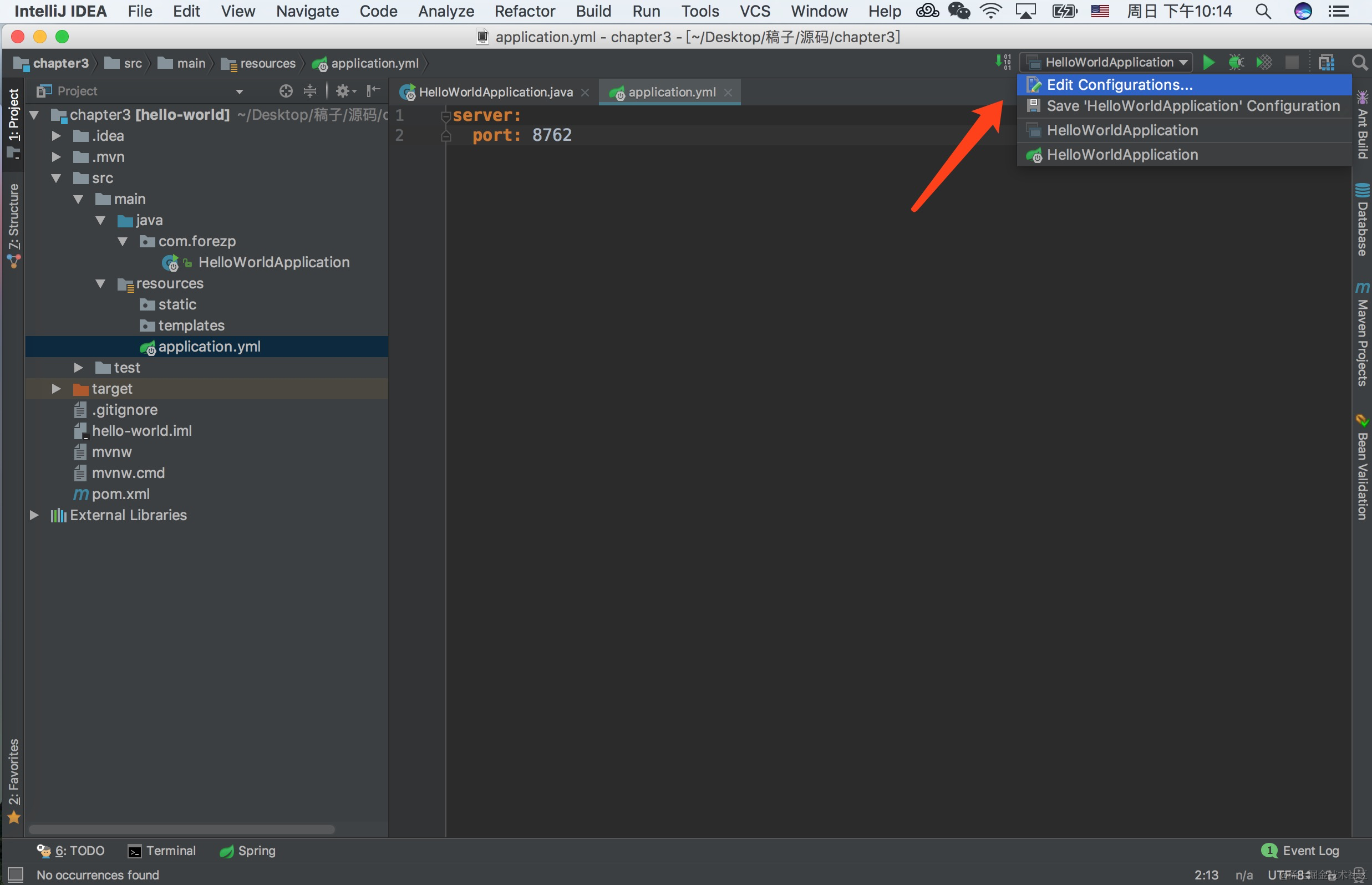 在IDEA上点击Application右边的下三角