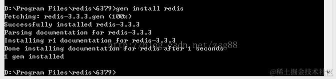 然后GEM 安装 Redis :切换到redis安装目录,需要在命令行中,执行 gem install redis