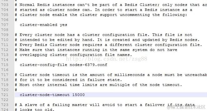 cluster-config-file nodes-6379.conf 是为该节点的配置信息,这里使用 nodes-端口.conf命名方法。服务启动后会在目录生成该文件。