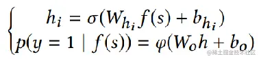 向量f(s)将输入到融合器中,并通过多个隐藏层进行转换。输出层是一个二元分类器,将y=1的标签分配给真元组,将y=0的标签分配给假元组。