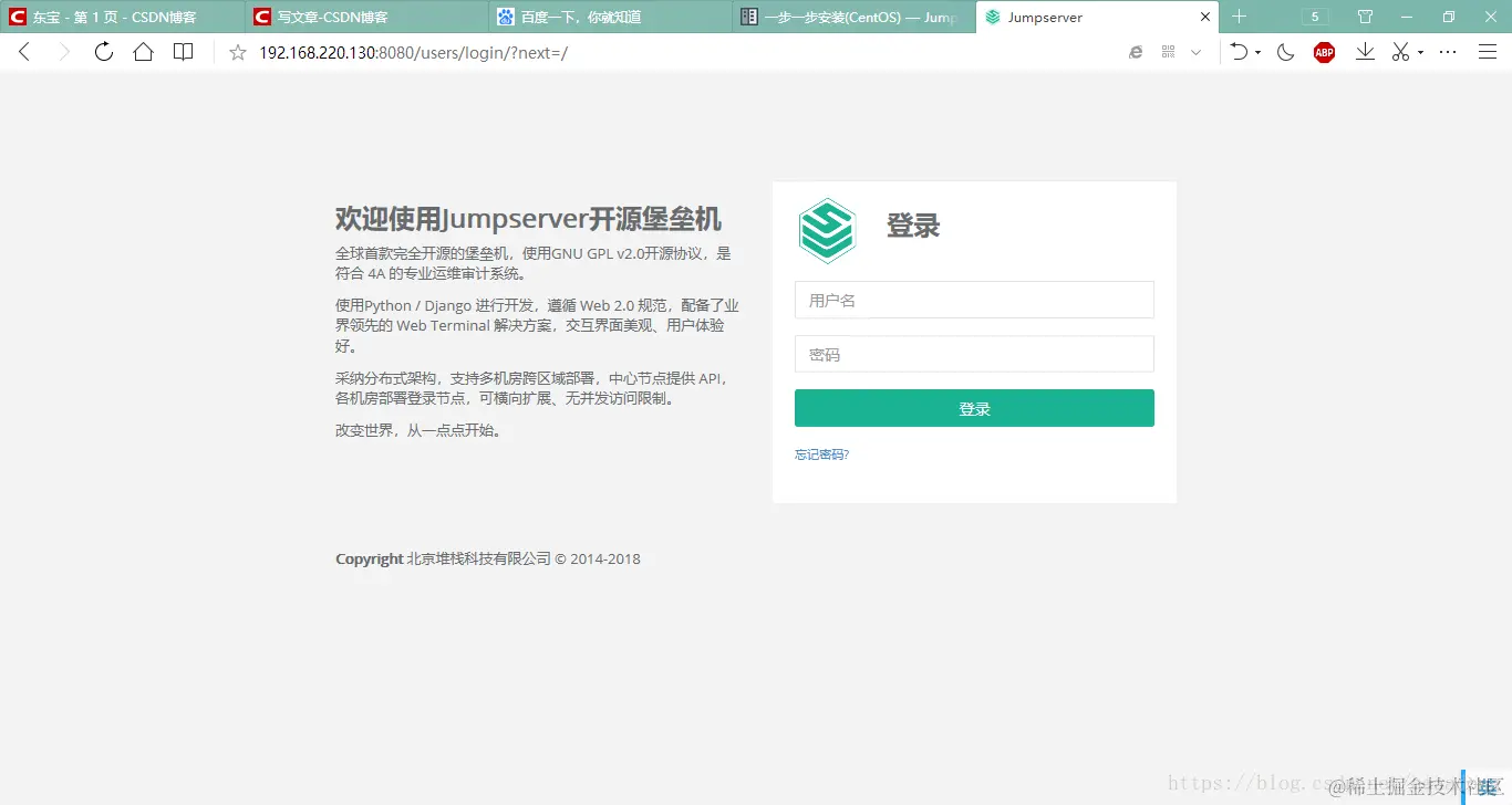访问http://192.168.220.130:8080/users/login/?next=/