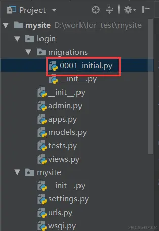 这会在login目录中的migrations目录中生成一个0001_initial.py迁移记录文件。