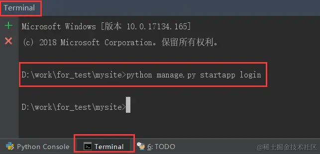 接下来要在Pycharm的Teminal中通过命令创建数据库的表了。有2条命令,分别是: