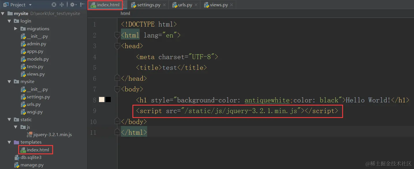 通过上面两个步骤,我们将index这个url指向了views里的index()视图函数,它接收用户请求,并返回一个“hello world”字符串。