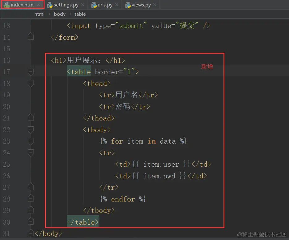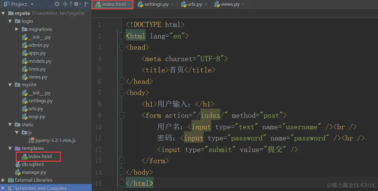 这时候我们先不要往输入框内输入信息。我们先修改views.py文件: