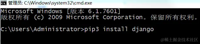 win+r,调出cmd,运行命令pip3 install django,自动安装Pypi提供的最新版本。