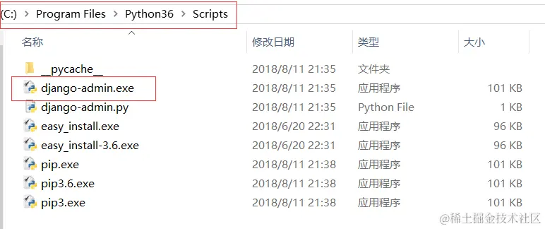 成功安装Django后,在下图中的路径可找到django-admin.exe文件,将它加入操作系统环境变量中。这样以后调用会比较方便。