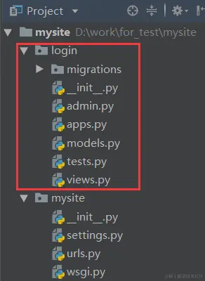 这样就创建了一个叫做login的APP,django自动生成“login”文件夹,及一系列文件: