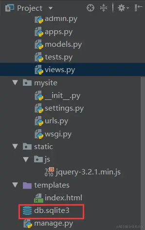 这样,我们就在数据库中将所有app的数据表都创建好了。我们可以看到项目根目录下出现了一个db.sqlite3文件: