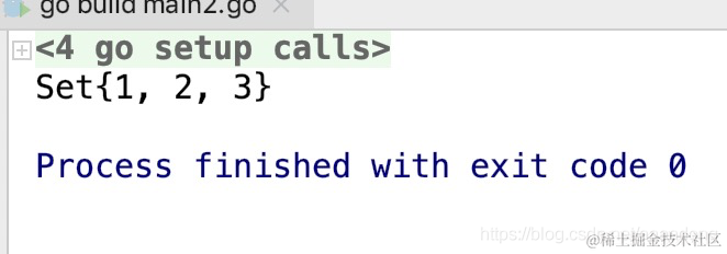 [Go实战]go使用github.com/deckarep/golang-set作为不可重复集合 zld126126 2022-10-14 27 阅读1分钟 package main import ( "fmt" mapset "github.com/deckarep/golang-set" ) func main() { //mapset 不可重复集合 ids := mapset.NewSet() ids.Add(1) ids.Add(1) ids.Add(2) ids.Add(3) fmt.Println(ids) } 输出结果: