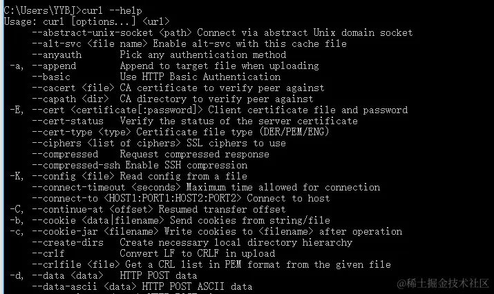 4:打开cmd ,输入 curl --help,显示入下,就代表成功了。