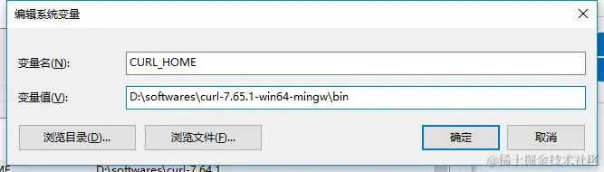 3:可以给Windows增加curl命令的环境变量,增加CURL_HOME环境变量,给PATH环境变量加上%CURL_HOME%;