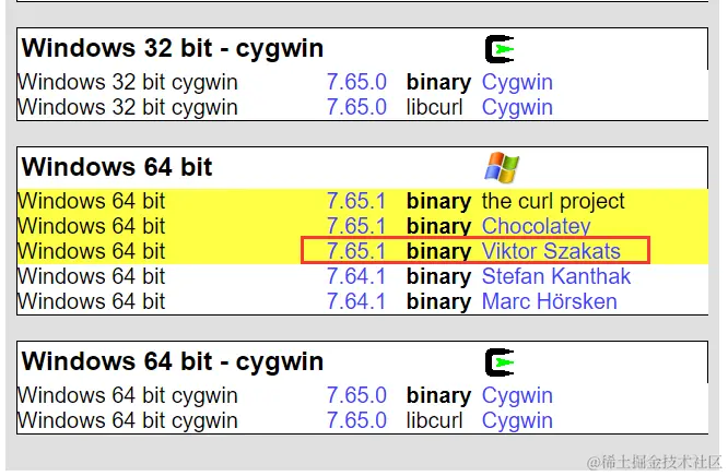 1:进入curl官网下载合适的版本,我这里下载的是Windows 64位的curl.