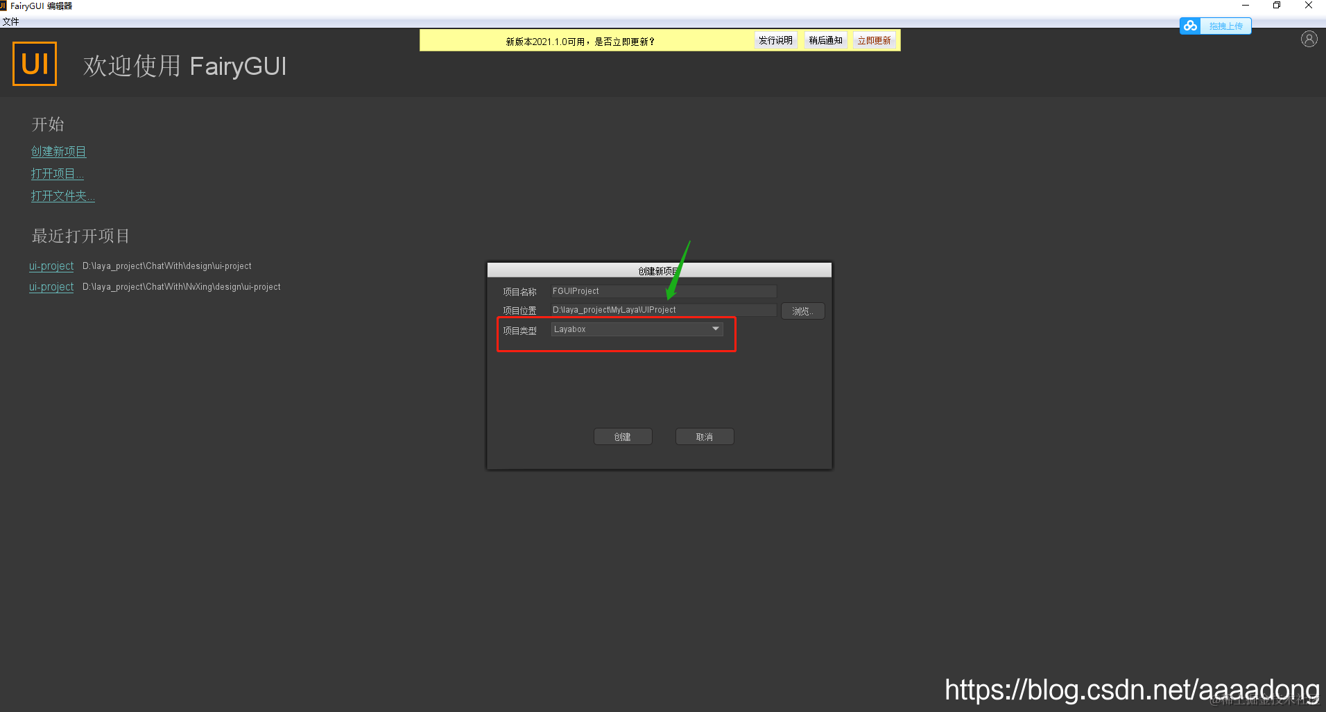 2.在laya目录下创建FairyGUI项目