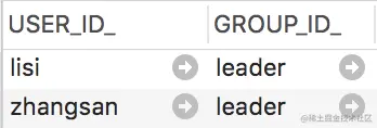 这就是设置 zhangsan 和 lisi 是组长(注意用户和组的关联关系表中有外键,所以需要确保两个参数都是真实存在的)。