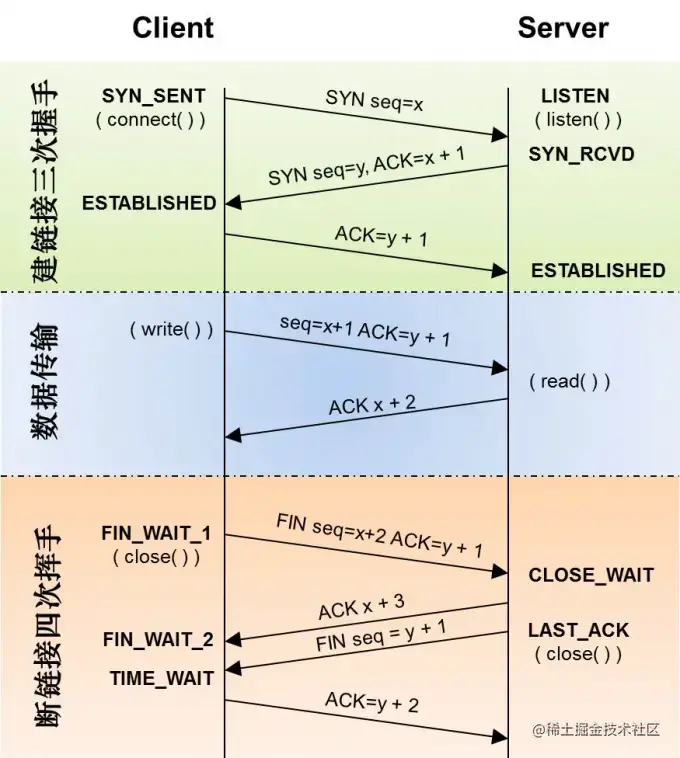connect),如果连接成功,这时客户端与服务端的连接就建立了connect()方法负责连接,具体的实现连接取决于实现方案,如:TCP三次握手过程