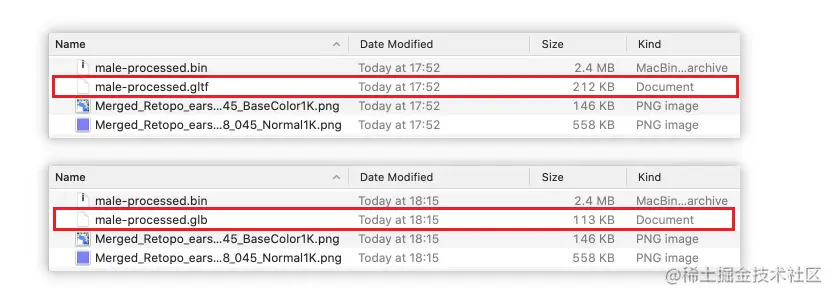 2.2.1 同一个glTF文件,.glb格式要比.gltf小