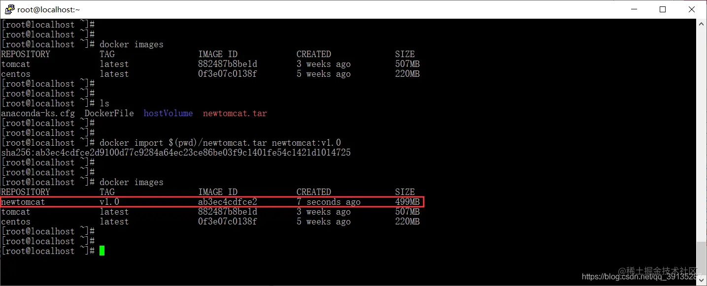 docker import $(pwd)/newtomcat.tar newtomcat:v1.0