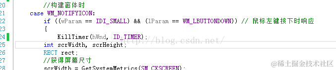 nid.uCallbackMessage = WM_NOTIFYICON;//这个是点击图标的事件消息,我们在消息处理函数WndProc()里面写一个case WM_NOTIFYICON:去处理鼠标点击图标事件
