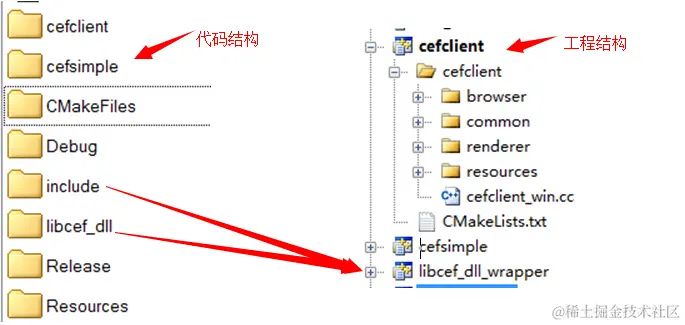 - libcef_dll :包含 libcef_dll_wrapper静态链接库源代码,使用CEF C++API的应用的必要链接库。