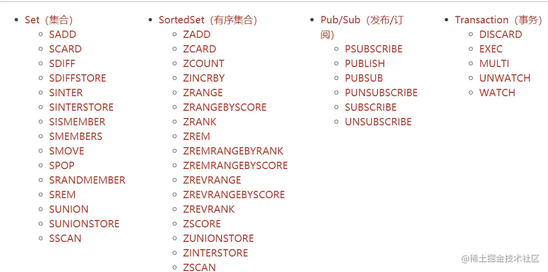 常用命令:sAdd/sMembers/sPop/sRem/sDiff/sunion等