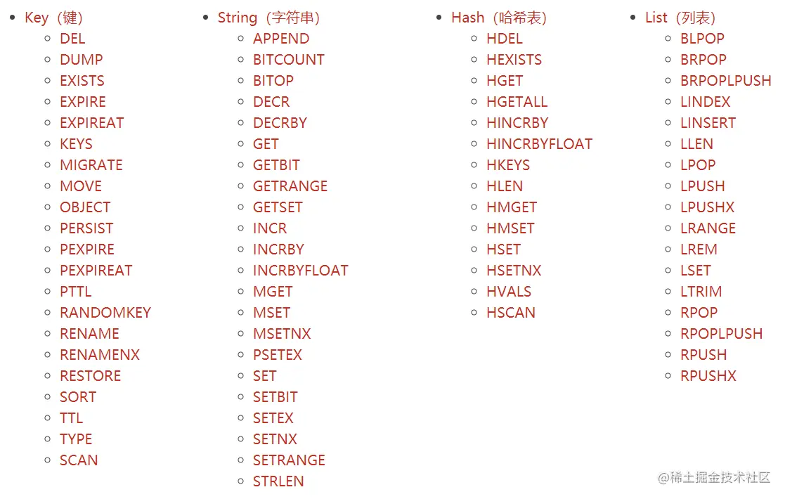 常用命令:lPush/rPush/lPop/rPop/lRange等。