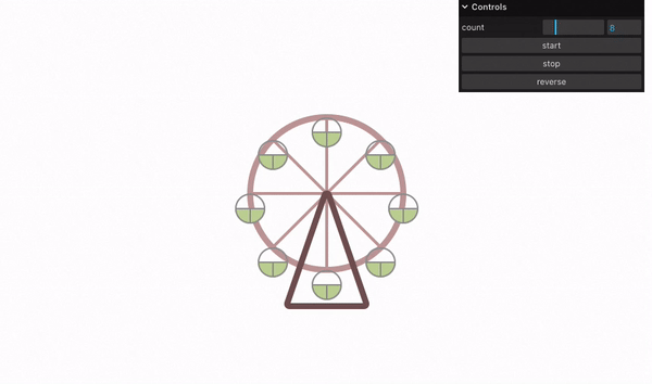 再添加一些动画播放控制的功能,stop、play、reverse、reset 等,在生产环境中可能会有用,例如在页面滚动到可视区外,或页面上有弹窗弹出时,我们可以暂停动画以提升页面运行时的性能。