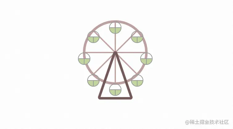恰好近期业务上开发了类似这样的摩天轮动画,我将其中的实现原理分享给大家。摩天轮动画主要分为 2 部分,一个是摩天轮上每个房间位置布局,另一个就是旋转动画了。