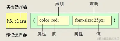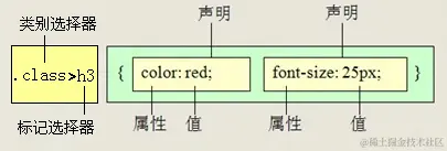 交集选择器由两个选择器构成,其中第一个为标签选择器,第二个为class选择器,两个选择器之间不能有空格,如h3.special。
