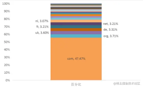 在受到暴破尝试攻击的网站顶级域名分布中,com 占据近一半数量,剩下的部分大多是各个国家的 顶级域名,这从某种程度上反映了当今 WordPress 网站的分布。