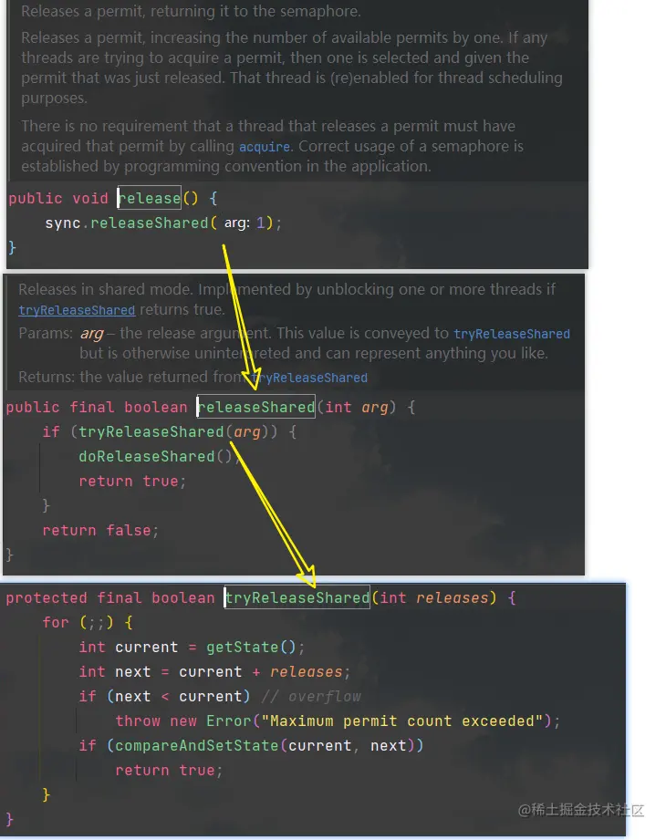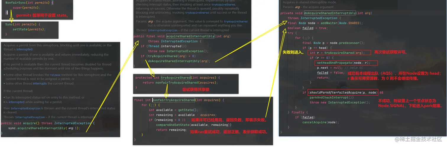 Semaphore有点像一个停车场,permits就好像停车位数量,当线程获得了permits就像是获得了停车位,然后停车场显示空余车位减一。