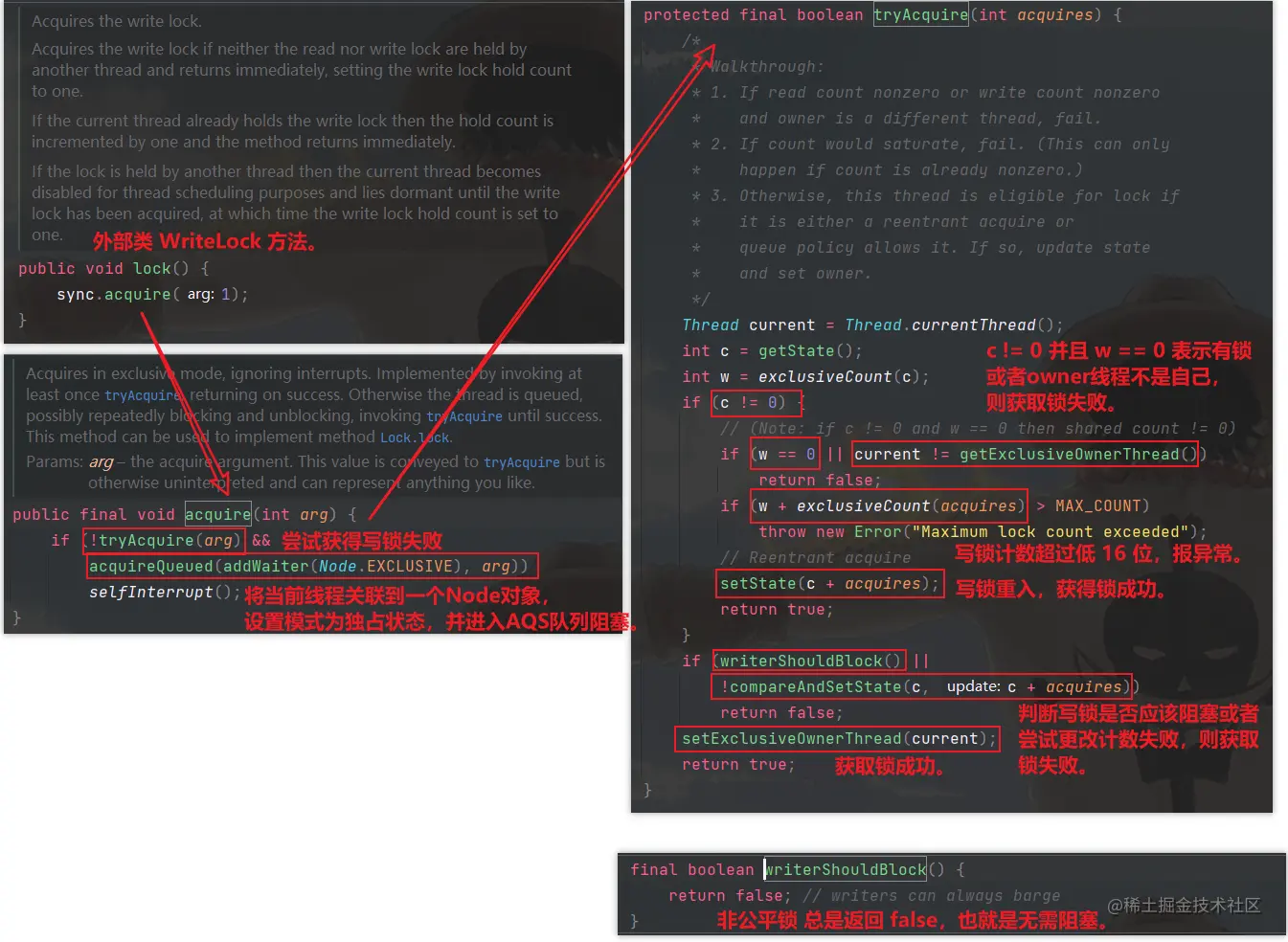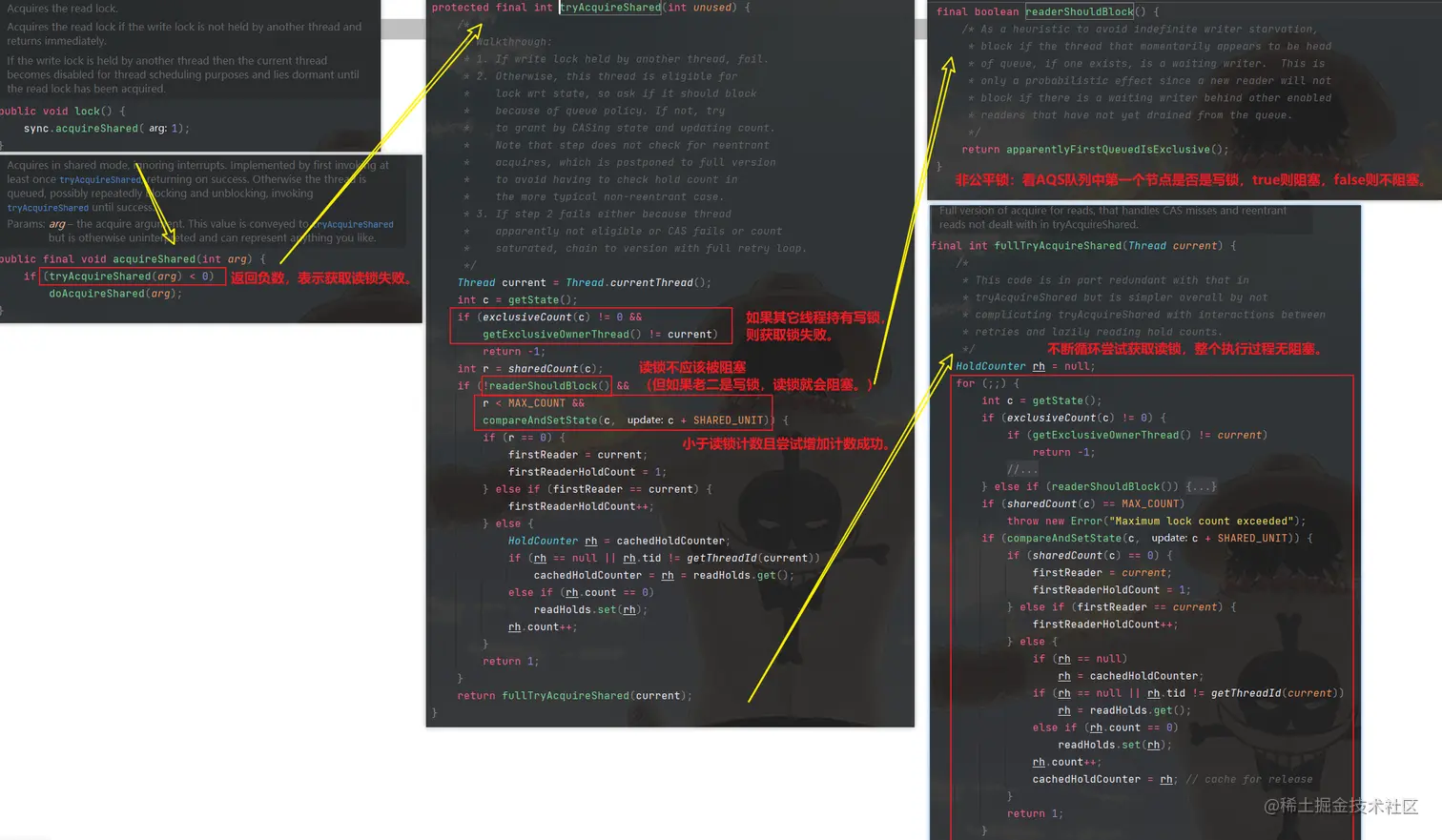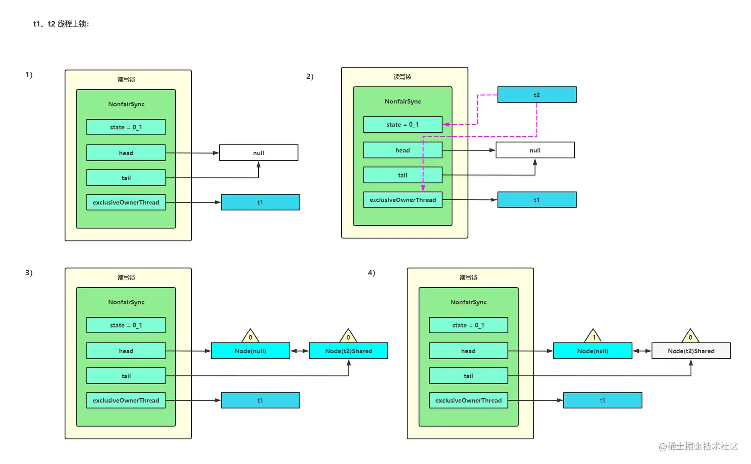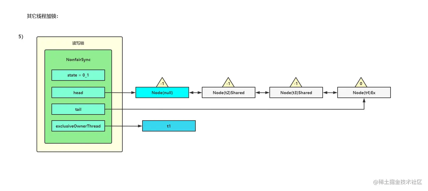 ReentrantLock类似,其它线程无论读还是写都必须获取锁。 - 注意:同一个线程可以拥有