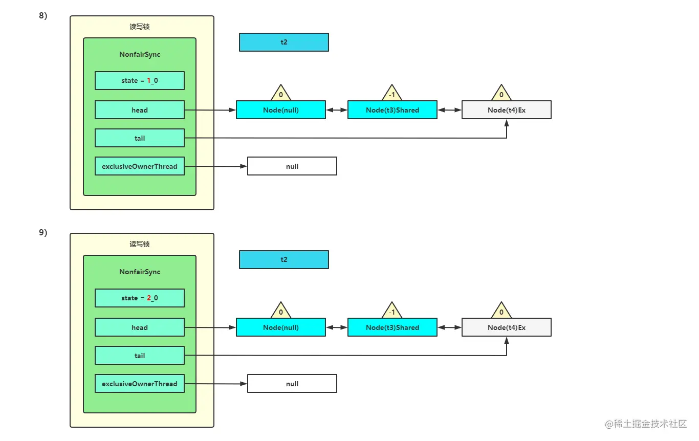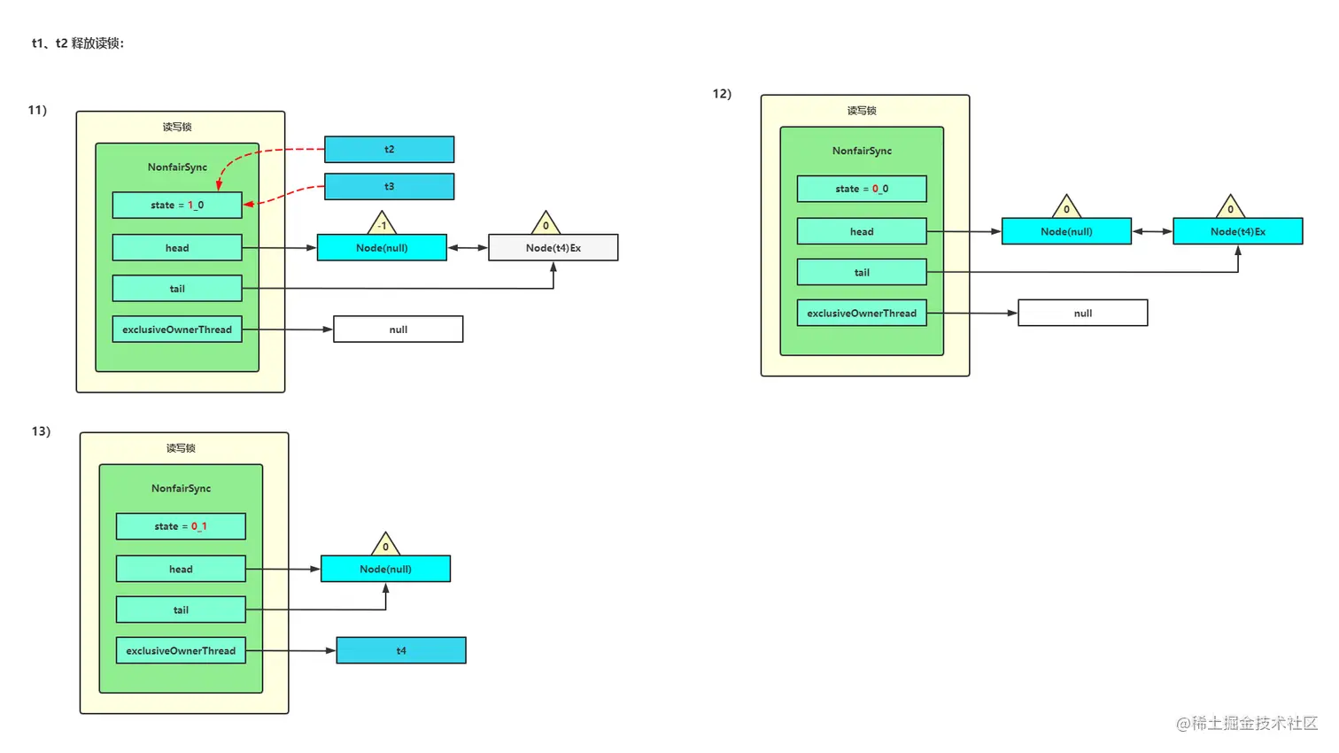 StampedLock不支持条件变量。StampedLock不支持可重入。- 总结:虽然它相较于读写锁优化了性能,但也不等同于能代替读写锁,使用还得根据实际场景进行选择。