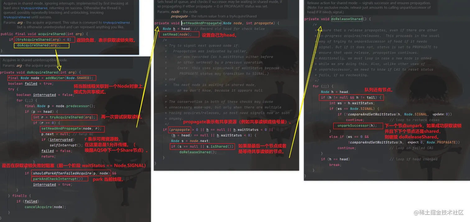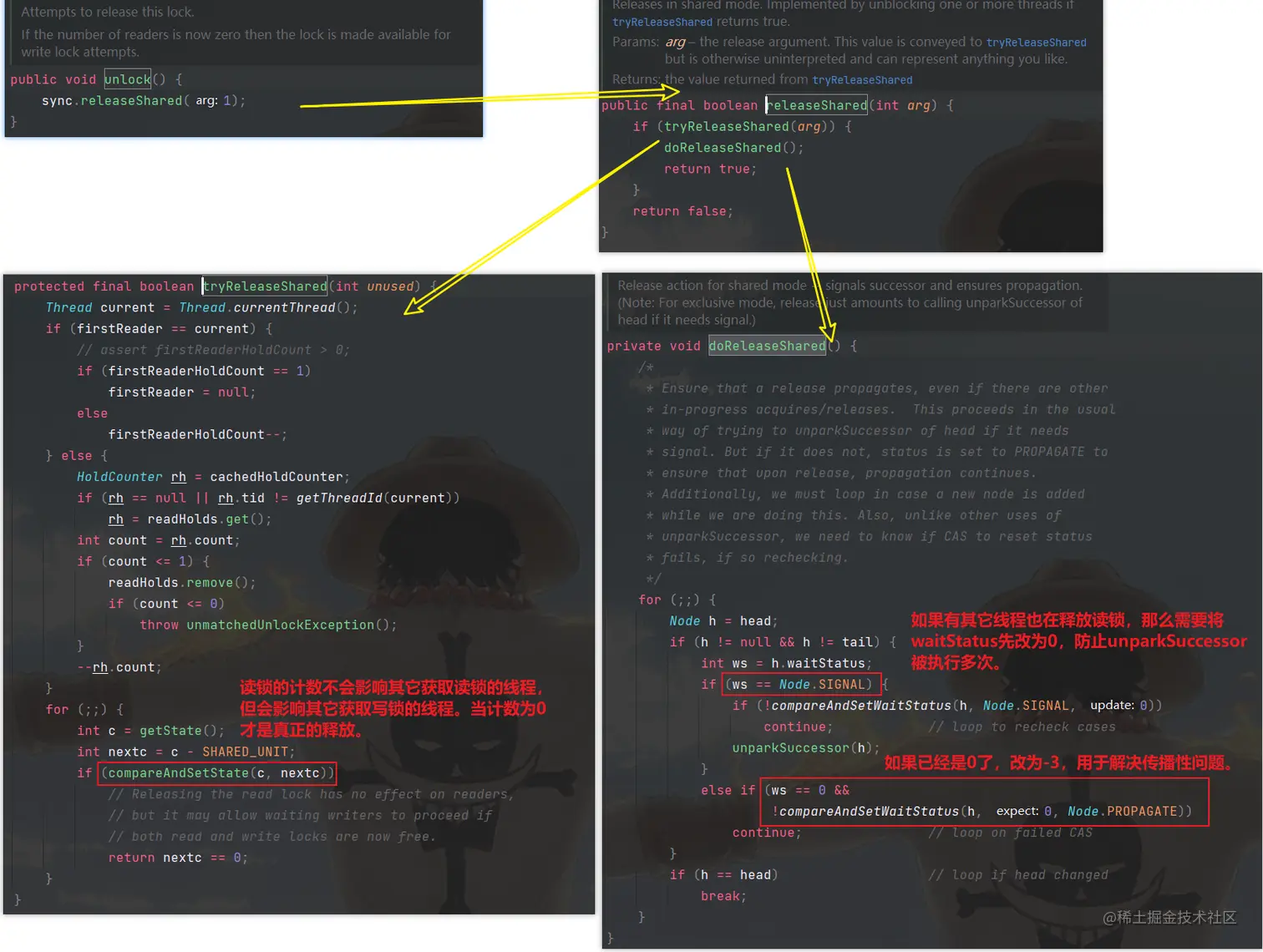 ReentrantLock即使是多线程读也需要每个线程获取锁。当读操作远远高于写操作时,这时候使用 读写锁 让 读-读 可以并发,提高性能,类似于数据库中的select ...from ... lock in share mode。 - 任何一个线程在写的时候就和